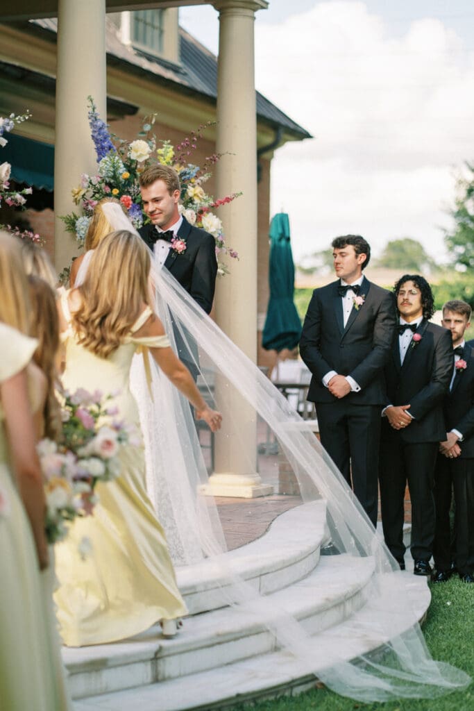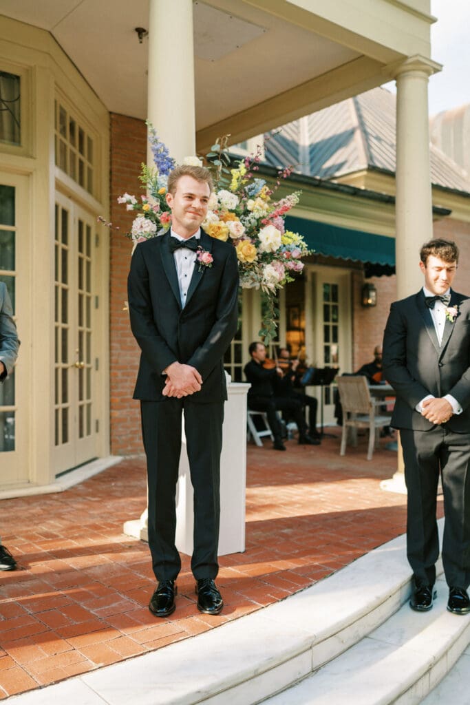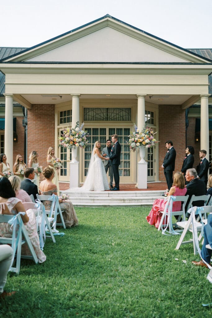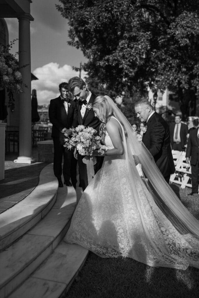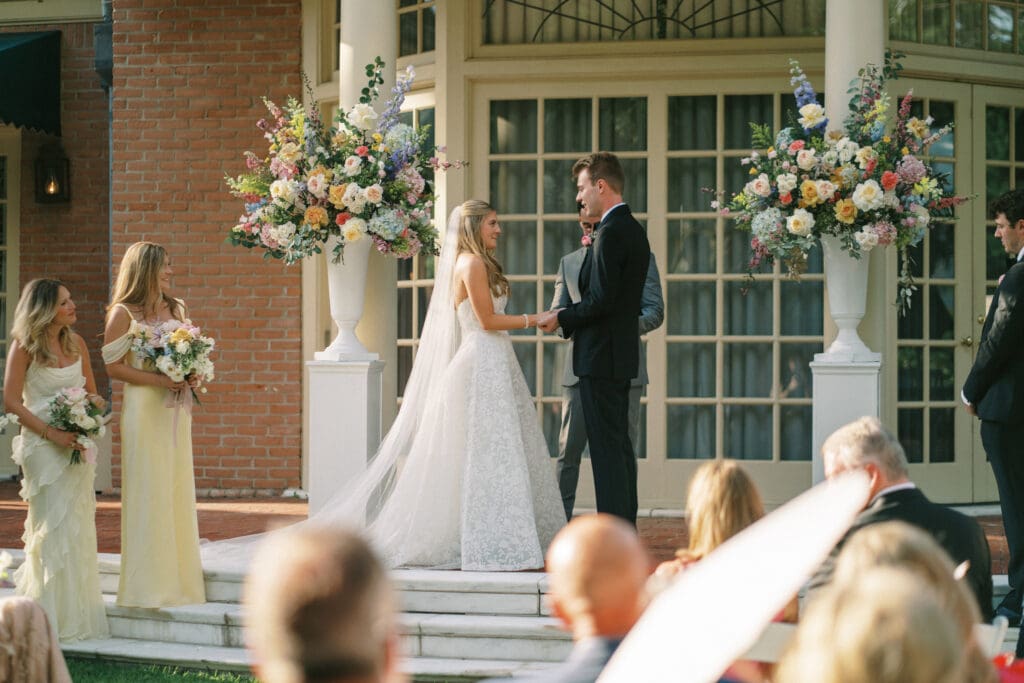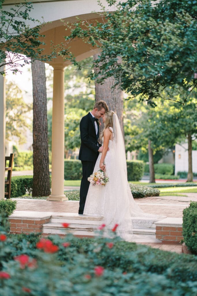 The ceremony itself took place on the lush, manicured grounds of The Junior League of Houston. As a Houston wedding photographer, I have seen many beautiful venues, but the classic brick architecture and towering oak trees of the Junior League provide an unmatched backdrop for a romantic, fine-art celebration. Flanked by towering floral arrangements on crisp white columns, Carly and Ryan exchanged their vows. The moment they looked at each other, the rest of the world seemed to fade away. It is always a profound blessing to witness two people enter into the covenant of marriage surrounded by the people who have shaped their lives.
