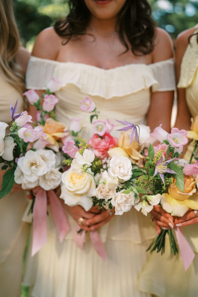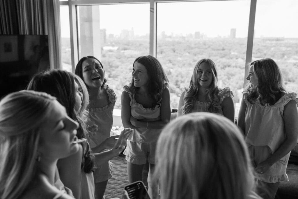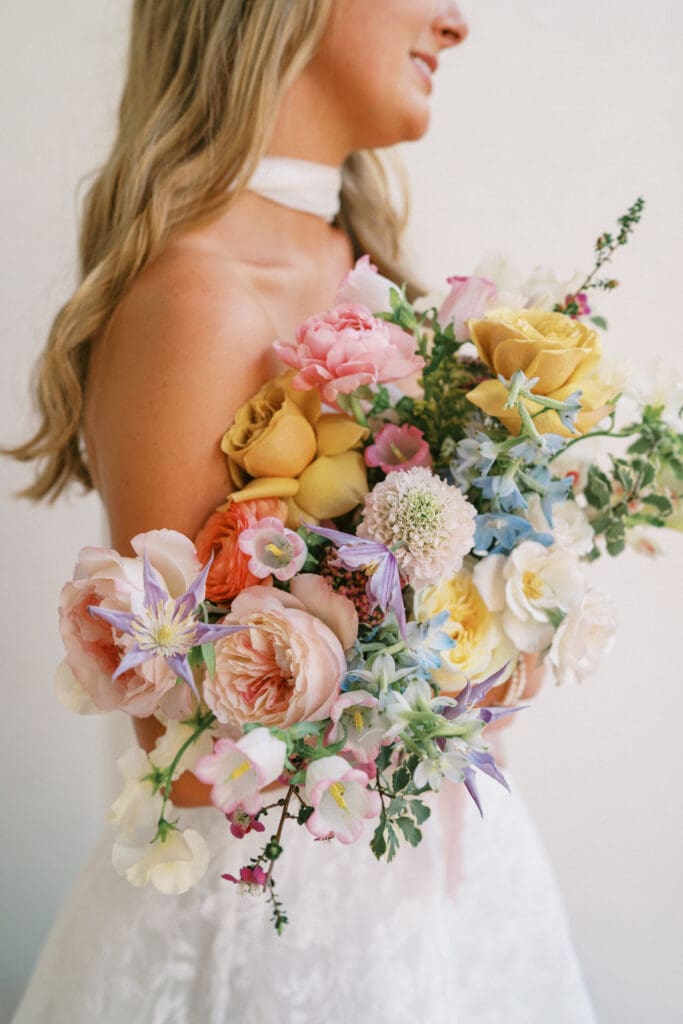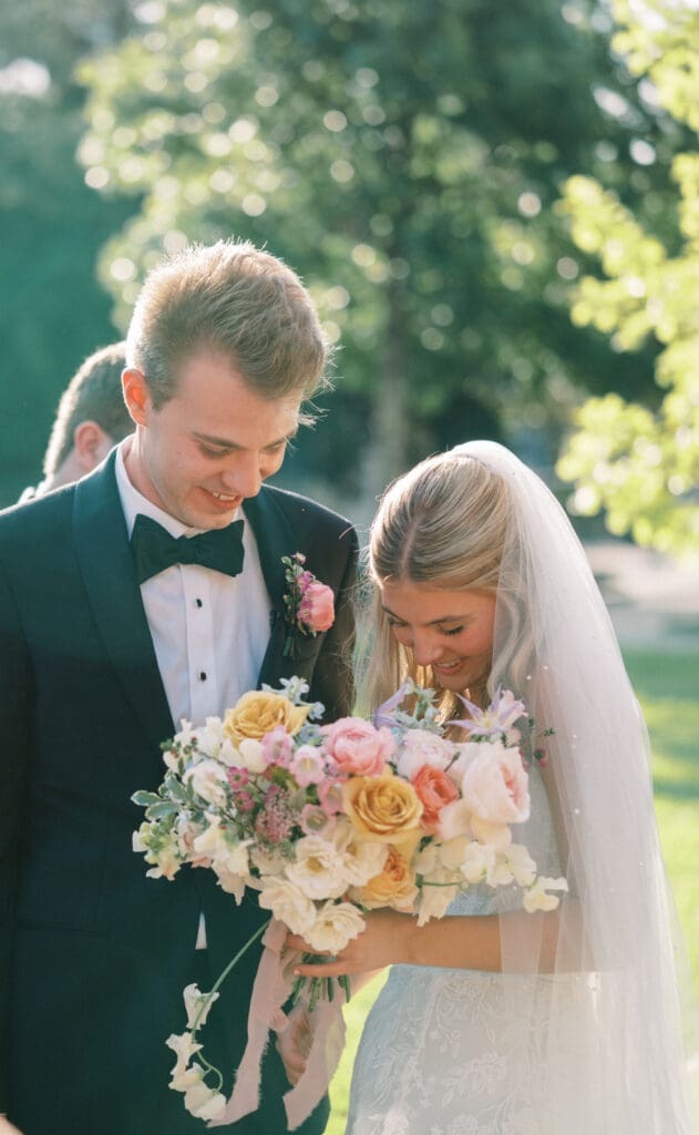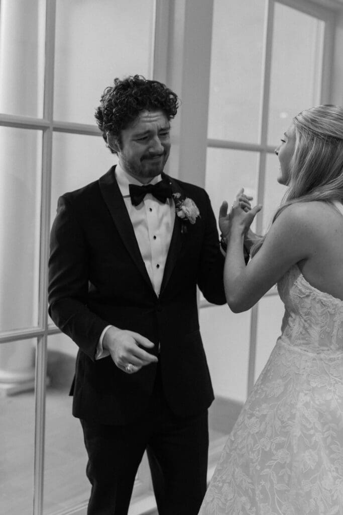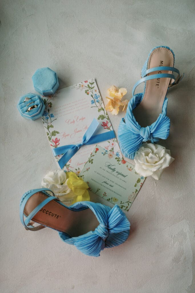 From the moment the day began at the iconic Hotel ZaZa in the Museum District, there was a sense of peaceful anticipation in the air. Carly, radiant in her stunning lace A-line gown from Ivory Bridal Atelier, carried a breathtaking pastel bouquet designed by Flower Power Productions. The soft peaches, vibrant pinks, and delicate yellows perfectly mirrored the joyful energy of the morning. Every detail — from the powder blue velvet ring box holding her elegant oval diamond to the custom watercolor invitations by Katie & Co. — was chosen with such intentionality.