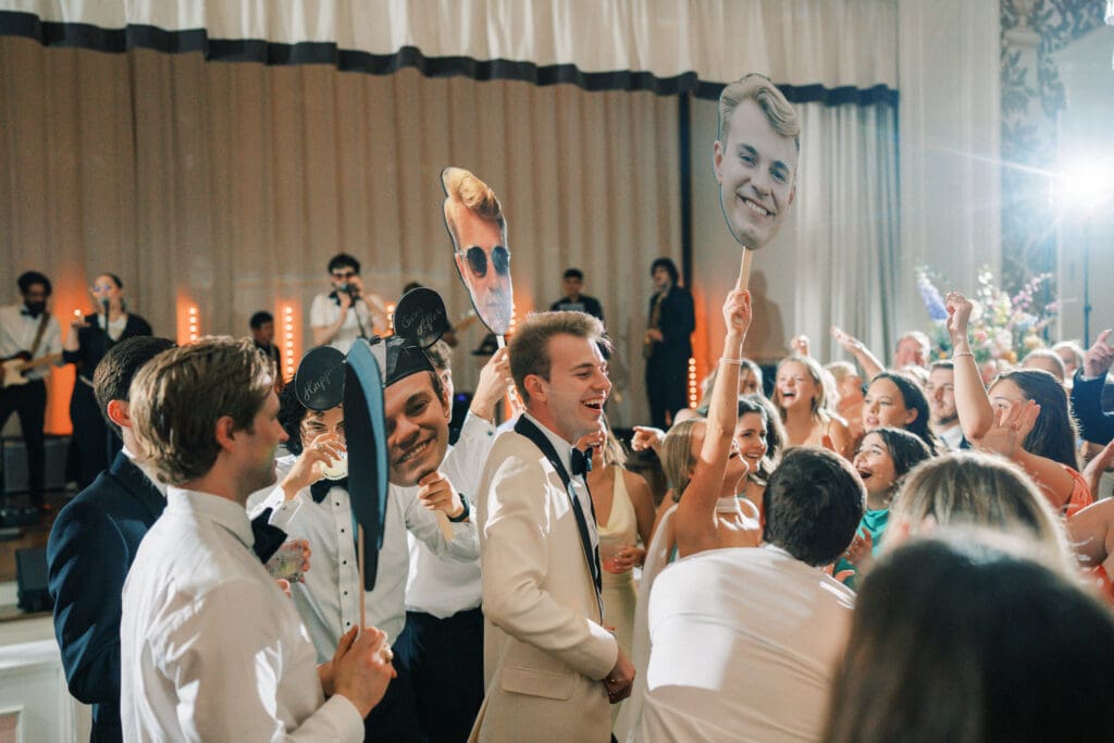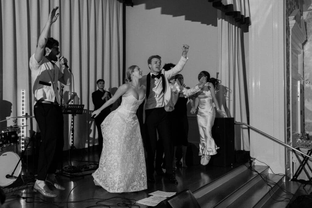 Following the heartfelt ceremony, the celebration moved indoors for a reception that was nothing short of spectacular. The incredible team at Belle Events, led by Annie and Kate, transformed the ballroom into a vibrant, elegant space. Third Floor Strings provided a romantic atmosphere during cocktail hour, while Nick and the Hits kept the dance floor packed all night long. Between the stunning floral installations by Decor by Dulce and the classic, multi-tiered masterpiece from Susie’s Cakes, the evening was a feast for the senses.